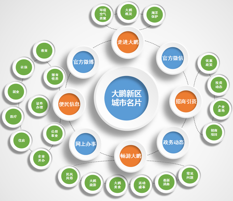 大鹏新区为构建“网上网下同心圆”,不断推进“互联网+群众路线”的实践,最大限度凝聚社会共识,坚持以大数据、智能化为引领,紧紧围绕新区中心工作和公众需求,率先在全市上线百度“城市名片”,进一步提升政府信息公开、为民办事服务、与民互动交流三大功能,提高政府网上服务能力。