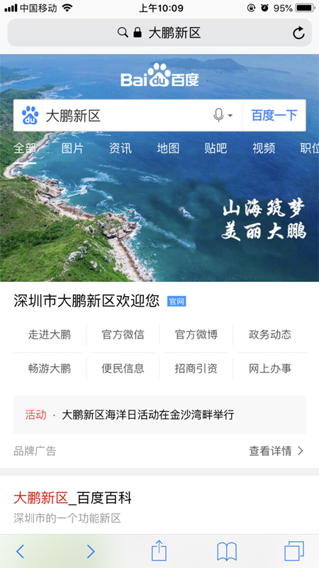 百度搜索“大鹏新区”展示页面