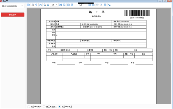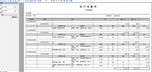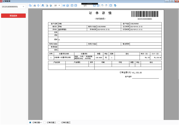 预览自主打印功能,当点击打印销售单按钮时,系统调用销售单报表文件,出现预览页面。