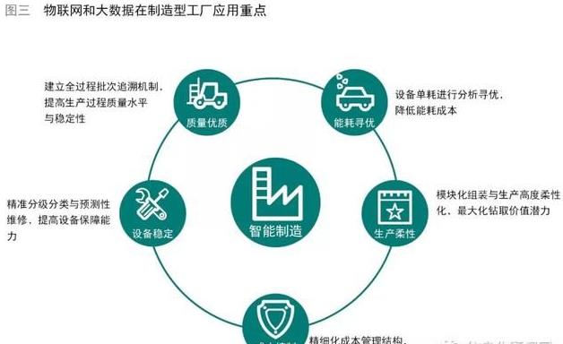 制造型工厂以提升质量、降低成本、提高效率为根本目标,聚焦产品的生产能力和保障能力。应用物联网技术,在生产设备自动化的基础上,让制造过程中的各种数据源互联互通,实现信息流的自动化,使整个制造链条全程可视化,通过大数据分析将海量的隐形数据转化为显性数据,并将信息及决策建议实时提供给生产一线操作工人、主管和高级管理人员,帮助企业增强制造洞察力,提高IT灵活性,帮助工厂达成最具挑战的运营目标:①生产柔性②质量优质③设备稳定④成本控制⑤能耗寻优,从而确保制造过程与商业目标一致。