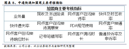 快递总部对全网实施控制的第三个支柱是严格的考核与淘汰制度。总部与加盟商的加盟合同一般是一年一签,签订合同后总部会对加盟商的日常运营进行定期考核。如果连续多月被预警,整改后也仍然达不到要求的将会被总部淘汰(终止加盟关系或者调整经营区域)。通过严格的考核与淘汰制度,总部保证了对加盟商的控制力。所以相比前面几年,加盟制快递在响应速度和服务质量上都已经有明显的进步。