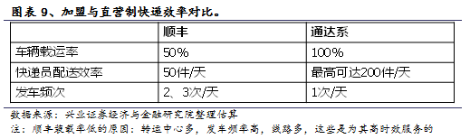 加盟制电商快递和直营快递成本差异巨大,但这是公司战略不同、目标市场差异造成的。