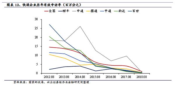 通过以上努力,加盟制虽然是以成本最低为导向,但龙头公司的服务品质并未下降,反而随着业务量的提升越来越好,过去几年有效申诉率不断降低。