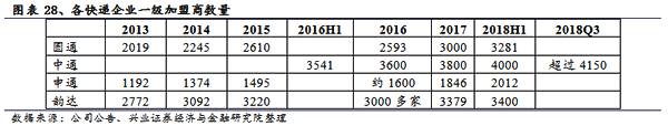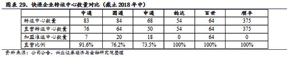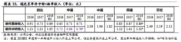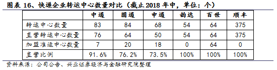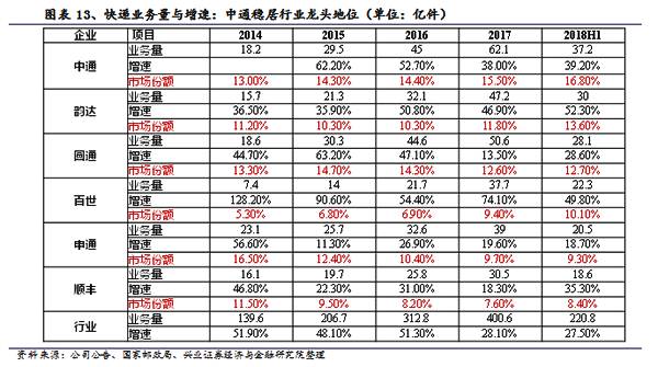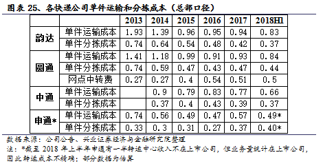 (由于申通截止2018年上半年有一半转运中心不在上市公司,但业务量统计在上市公司,因此口径不可比,后续比较不纳入。)