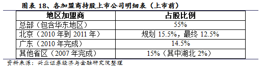 并且,总部以无偿或者很低的价格提供给终端加盟商一套统一的IT系统。这样一来,虽然加盟网点掌握在个体老板手里,但关键节点(人事、财务、流程)仍有总部掌握。