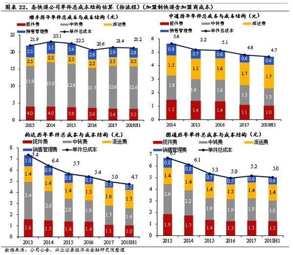 本报告视角主要针对电商快递,顺丰的相对高成本是其差异化战略的结果,本文分析其成本仅作参考,而不是直接与电商快递对比。