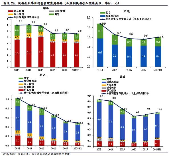 我们把加盟商利润作为全网管理成本的一部分来比较各家公司全网单件管理成本,加盟制的组织架构和管理模式带来了较低的管理成本。