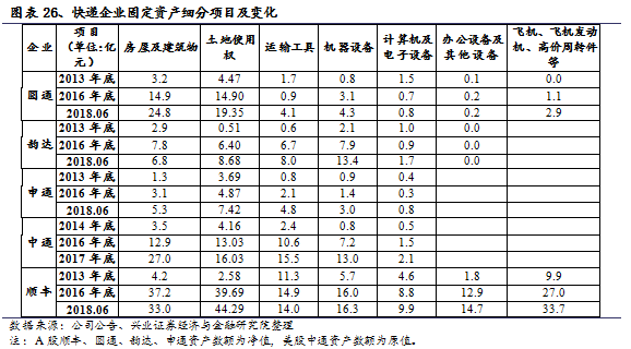 图表26显示,中通在资本开支方面很早起就投入了土地、房屋、设备、车辆等,覆盖了快递网络的核心要素,体现了其资本投入的前瞻性和精确性。