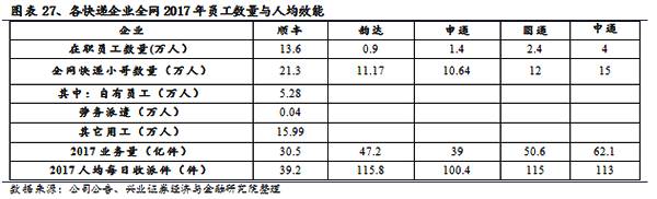快递作为劳动密集型行业,人工成本是最大的部分。顺丰人工成本绝对值高于通达系快递公司,但通达系人工成本占总成本比例远超顺丰。
