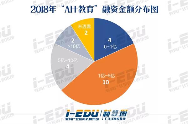 从融资金额来看,除2起未透露金额外,2018年“AI +教育”领域80%的融资金额在1亿元人民币以上,大部分的融资金额集中在1亿至5亿元人民币。