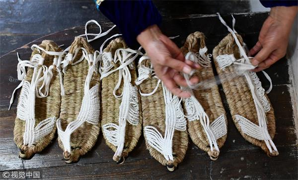 贵州省遵义市湄潭县生产的草鞋,湄潭把扶贫开发与现代农业、乡村旅游等统筹推进,全县建档立卡贫困户12961户43689人,已脱贫9913户35777人。(图/视觉中国)