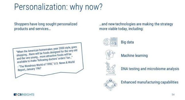 个性化一直是最受关注的餐饮趋势之一,但现在新兴技术正在使其更加实用。在线调查、大数据、家庭DNA测试和机器视觉等工具可以帮助公司更好地了解消费者需求。机器学习可以帮助选择最适合每个购物者的产品,而3D打印和自动化工厂可以支持生产。