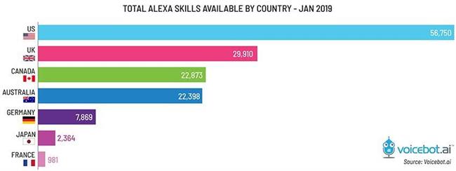Voicebot 提到,鉴于 Actions 数统计范围为美国地区,应该拿出 Alexa 在同一地区的数量(56,750 个)作为比较,这样会显得公平、客观一些(8 万是 Alexa 在全球范围内的技能数量)。