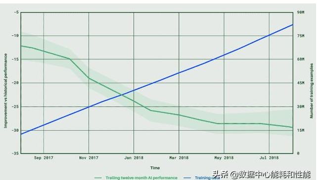 虽然只上线了几个月时间,这个系统已经可以稳定地节约平均30%左右的能源,而且他们还期待系统未来可以改善更多。这是因为随着数据更多,系统的优化判断能力也会变得更强,如下图。