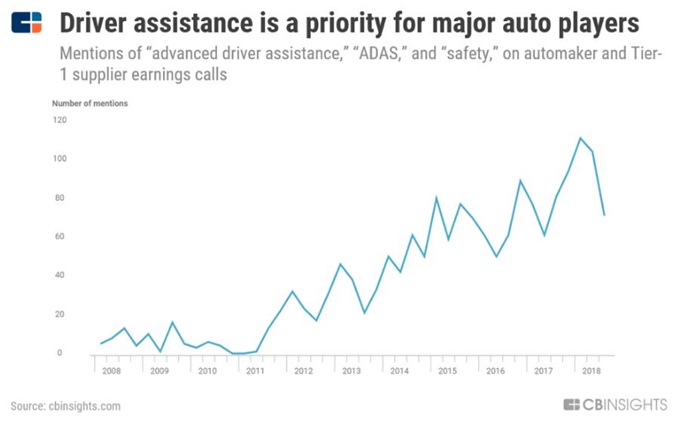 计算机视觉和机器学习软件的进步正在实现新的车载驾驶员监控功能。目前,在美国大约95%的车祸死亡是人为错误所导致,驾驶员协助是整个汽车领域的优先考虑事项。2019年最重要的汽车趋势之一将是主要汽车制造商开发自己的车载传感器技术。