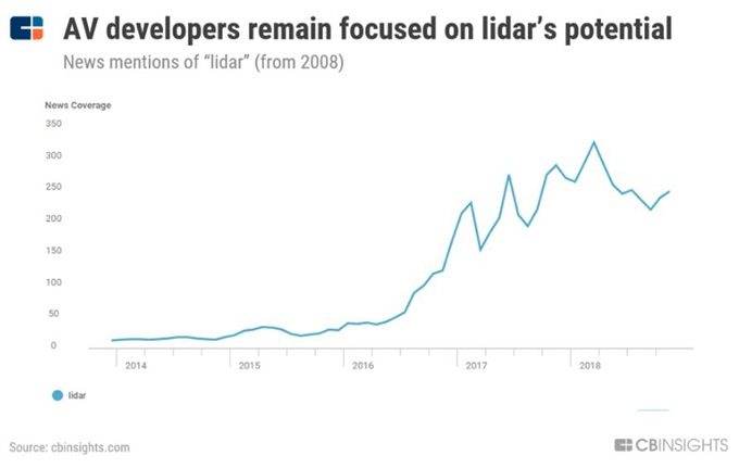 激光雷达发射光脉冲以测量周围物体的距离并生成环境的3D渲染。然而,激光雷达的实用性受到了激烈的争论,主要是因为技术成本高。今年,在技术进一步完善和发展的同时,预计这个争论也将继续进行。