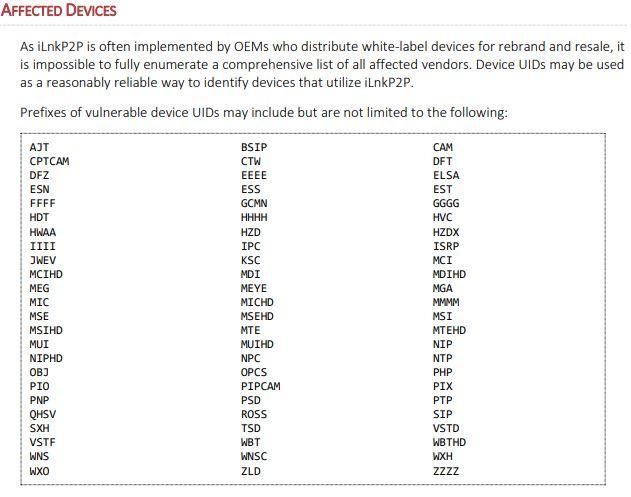 安全漏洞包括iLnkP2P,中国开发的软件深圳云尼技术,数以百万计的物联网使用iLnkP2p传输,其中包括安全摄像头和网络摄像头、婴儿监视器、智能门铃和数字录像机。