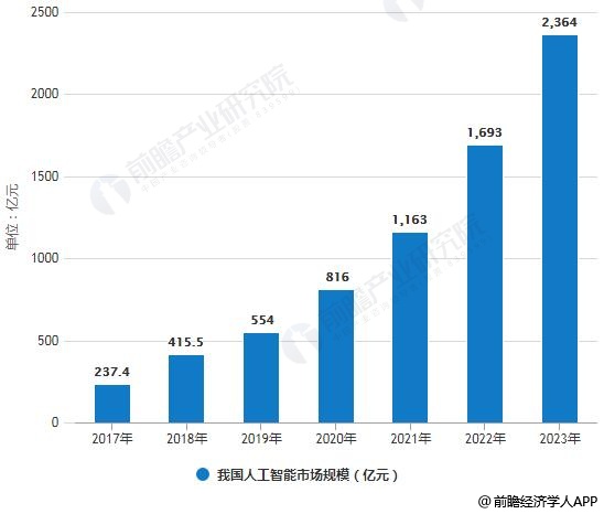 2017-2023年我国人工智能市场规模统计情况及预测