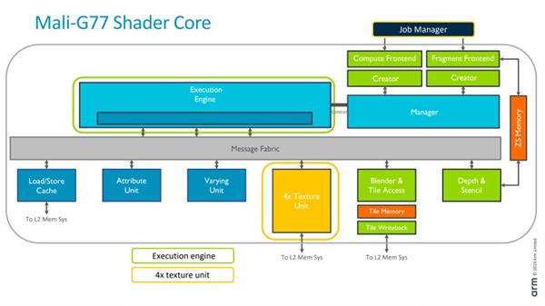而GPU核心方面,与现有的Mali-G76相比,Mali-G77性能提升高达40%。当然,这个数值是包括流程和架构改进在内的。Mali-G77可配置7到16个着色器核心,每个核心几乎与G76核心大小相同,这意味着旗舰智能手机可能会出现与今天类似的GPU核心数量 - 在十几岁的时候。 简而言之,这让我们可以针对现有芯片组进行一些推测性能评估。