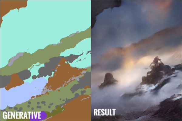 取名自画家高更和「对抗生成网络」GAN 的 GauGAN 是一款 AI 绘画网页应用,用户只需要用最简单的电脑画图工具画出几笔涂鸦,GauGAN 就可以将它转化为各种风格的绘画大作,部分转化后的图片甚至有相机实拍的效果。