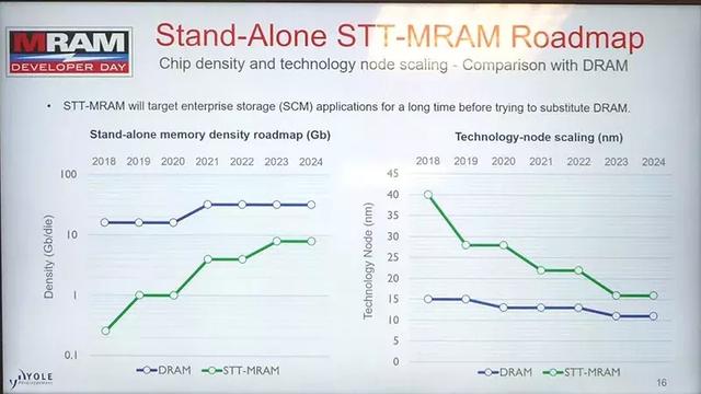 图6:MRAM和DRAM的技术路线图。图片来源/Yole