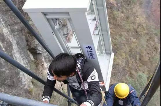 “沿途一边是悬崖峭壁,一边是万丈深渊,真是如履薄冰,在这样的自然条件下,中国电信的施工队伍正在肯肯村架设新的通信杆路,为肯肯村开通光纤网络。”