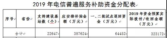 从财政部发布的《关于下达2019年电信普遍服务补助资金预算的通知》可以看出,2019年中央财政支持电信普遍服务补助资金达到32亿以上,支持超过2万个4G基站的建设,平均每个基站财政补贴16万元。