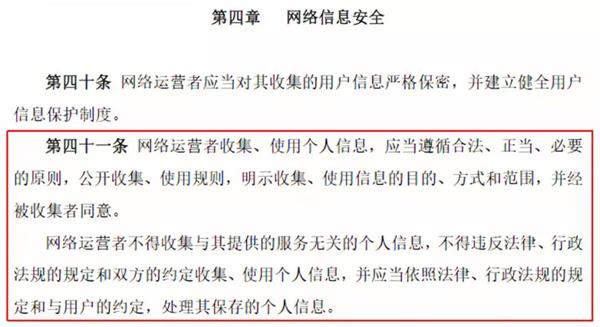 其实,我国2017年6月1日施行的《中华人民共和国网络安全法》第四章第四十一条和四十四条就已经对个人隐私信息数据的收集和使用做出明文规定,这也与爬虫直接相关。