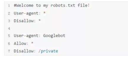 在上面这个robots.txt例子中,所有的爬虫都被禁止访问网站的任意内容。但是Google的爬虫机器人,可以访问除了private位置的所有内容。如果一个网站上没有robots.txt,是被认为默许爬虫爬取所有信息。如果robots.txt做了访问的限制,但是爬虫却没有遵守,那就不是技术实现这么简单的事情了。