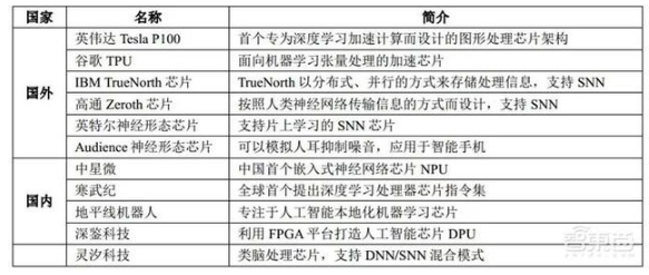 因此,随着人工智能算法和应用技术的日益发展,以及人工智能专用芯片ASIC产业环境的逐渐成熟,全定制化人工智能ASIC也逐步体现出自身的优势,从事此类芯片研发与应用的国内外比较有代表性的公司如图所示。
