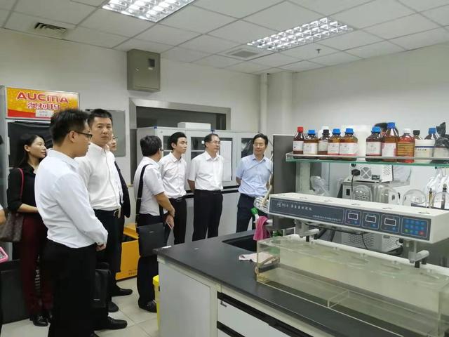 图二:蓝盾股份总裁柯宗贵(右一)带领肖铁贤副总经理、总经济师参观中科蓝华生物工程实验室。