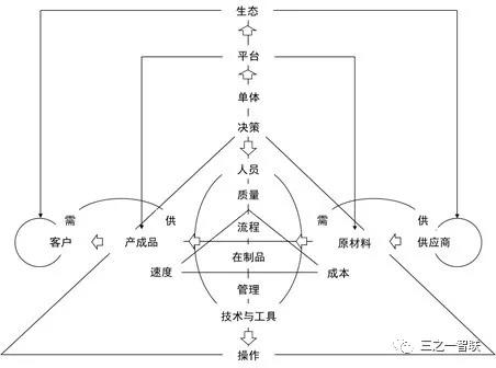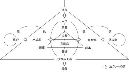 经营决策是做“势”,管理执行是做“式”,业务操作是做“事”;从这个意义来说,智能制造应该包括智能的经营决策、智能的管理执行和智能的业务操作。智能的经营决策是智能地做“势”,即,时刻保持“企天合一”;智能的管理执行是智能地做“式”,即,搭建精益的制造体系;智能的业务操作是智能地做“事”,即,自动化或少人化的现场作业;后两者也是工业4.0中纵向集成和端到端集成的主要内容。