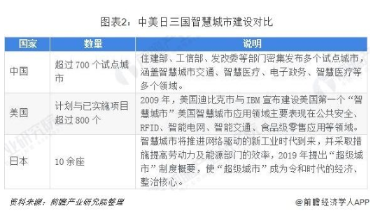 根据前瞻产业研究院数据以及日媒报道信息来看,作为亚洲强国的日本,目前在全球智慧城市建设中已经落后于中美两国。目前中国智慧城市试点城市已超过700个,美国在2015-2017年已实施300多个智慧城市项目,且规划实施超过400个项目,涉及交通、电网、零售、公共安全等多个领域。而尽管日本在传感器,人脸识别等领域拥有一流技术,在城市建设方面也处于领先地位,但是直到2019年4月召开的国家战略特区咨询会议上才正式确定了名为“超级城市”的制度概要,目前日本智慧城市数量仅十余座,日媒报道称“日本需要在超级城市的建设上尽快行动起来”。