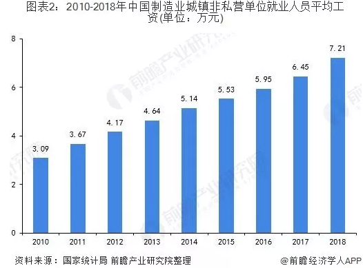 目前我国经济发展正处在新旧动能转换的关键时期,支撑经济增长的生产要素条件发生了重要的变化。近年来,我国制造业人力成本不断上升,就业人员工资高企,根据国家统计局数据显示,2018年制造业城镇非私营单位就业人员平均工资达到7.21万元/年/人,是泰国和越南的2-3倍,劳动力成本优势逐渐消失。