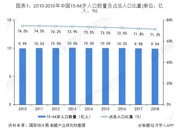 刘易斯拐点,是指在工业化进程中,随着农村富余劳动力向非农产业的逐步转移,农村富余劳动力逐渐减少,最终达到瓶颈的状态。国际上通常用刘易斯拐点来判断劳动力是否短缺。显然,目前刘易斯拐点限制了我国全要素生产率的提升。近年来,我国适龄劳动力人口总量以及占比不断下降,2018年中国15-64岁人口数量占总人口的比重下降至71.3%。随着中国老龄化的脚步的加快,预计未来占比将持续下降,中国人口红利进入末期。