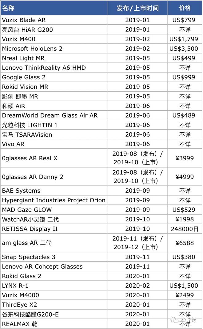 2019年至今AR产品一览: