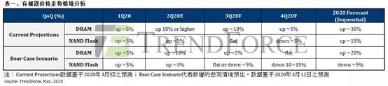 2020年第一季与第二季内存(DRAM)与闪存(NAND Flash)均价仍维持上涨,主要是因为年初客户端库存水位偏低,虽在价格走势持续上扬的前提下,采购备货意愿强烈,然而集邦咨询认为真正的挑战会从第三季开始,随着需求萎缩导致库存去化不易,将大幅削弱客户端采购力道,使得价格涨幅受到抑制,在NAND Flash领域更可能由涨转跌。