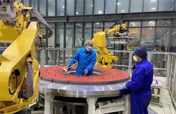 传统离散制造的特点是手加工、机加工并存,人是保证生产进行的决定性要素。基于汽轮发电机制造行业的特殊性,停工会给企业和上下游经济造成巨大损失。得益于上发厂近两年添置的机器人自动叠装系统、线圈端部自动成型机等一大批智能设备,员工群体作业的现状得到改观。目前正处于疫情防控的关键期,但上发厂交付订单持续增加,正是得益于智能制造。