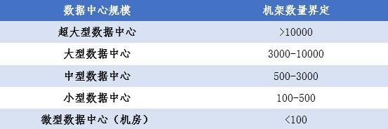 根据机架数量的不同,数据中心可被分为超大型、大型、中型、小型和微型数据中心。