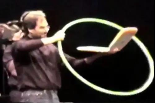 乔布斯演示iBook G3的“无线”魔法,他将其命名为“AirPort”