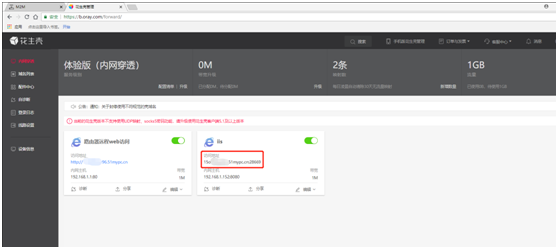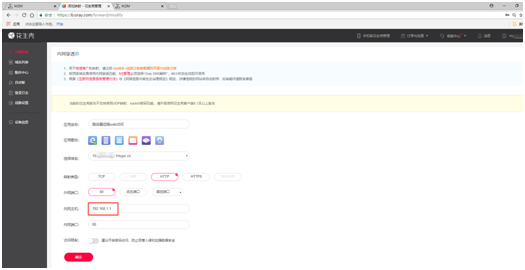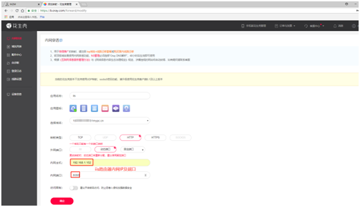 同样方法,在花生壳web管理后台“内网穿透”界面,设置iis服务映射;