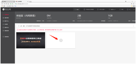 在花生壳Web管理后台的“内网穿透”板块,点击“+”添加映射;