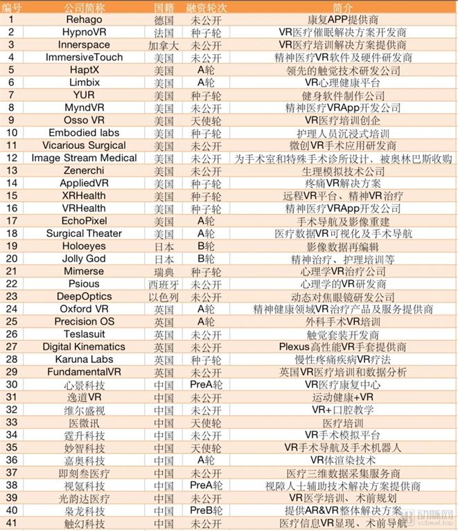 从数据可以看出,海外融资企业的轮次大多位于天使轮和A轮,融资金额大部分位于2000万元-6000万元这一区间,而在这之中,没有国内医疗VR企业获得投资机构的青睐。