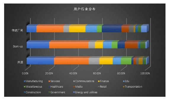 * 开源厂商用户行业占比Top3分别是服务业、制造业和金融业;