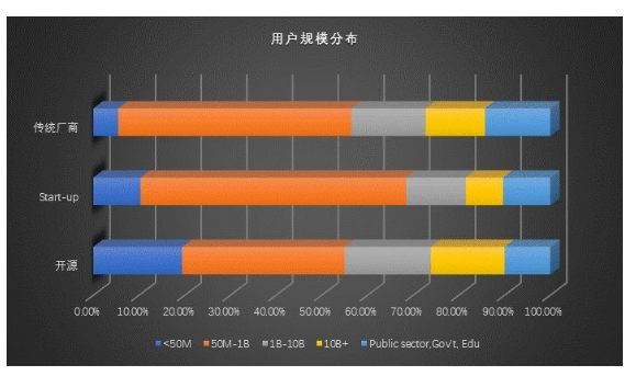 * 传统厂商的中小型企业用户也占了一半左右,但公共部门、政府和教育用户占比是三类厂商中最多的(14.29%),也许与传统厂商长期的市场积累有关。