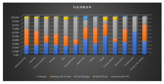 用例则分为分析、备份、归档、云存储、混合云、商用HPC这五大类。其中,分析和商用HPC大部分都是企业的关键业务,而云存储,也成为很多企业线上业务后端存储的首选。