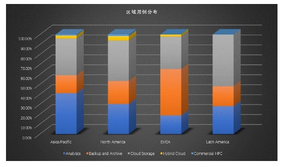 * EMEA用例占比最高的是备份与归档,为46.63%;