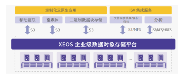 因此,XSKY专注于亚太客户的实际需求,推出的XEOS对象存储凭借多样化的协议支持以及丰富的企业级特性,如延展集群、整池扩容、统一命名空间、海量小文件管理、多协议互通(NFS/S3/HDFS)等,为用户提供多场景解决方案,可承接企业各项关键业务及新业务需求。