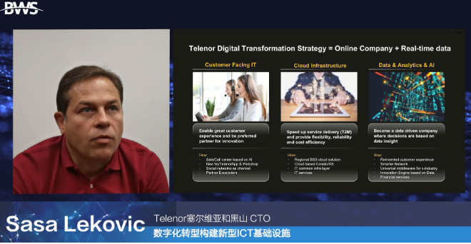 在题为“数字化转型构建新型ICT基础设施”的主题分享中Lekovic指出,Telenor塞尔维亚和黑山的数字化转型目标是成为一家完全在线+实时数据处理的公司,通过在面向客户的IT、云基础设施、数据&分析&AI三大维度发力,以最佳的数据网络、合作伙伴生态、数字化服务、业务分发闭环为客户提供最优的服务,推动行业数字化转型,为社会贡献价值。