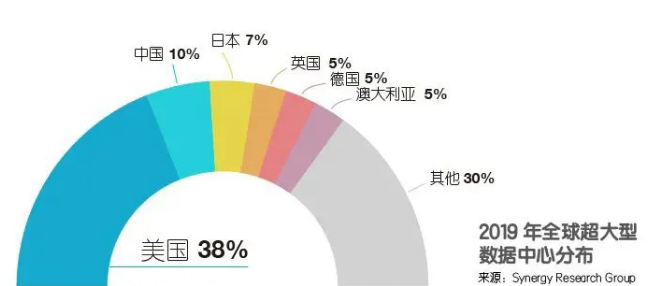2019年中国数据中心数量大约有7.4万个,全球占比为23%。各方均倾向通过规模化建设以避免盲目建设和重复投资,数据中心大型化、规模化将成为大势所趋。2019年中国有超大型数据中心48个,占全球总数(504个)比重约为10%,与美国仍有较大差距。